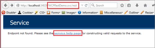 - Add rest at the end of the browser's URL as configured in web.config endpoint address and hit Enter. You will see the results as shown below.