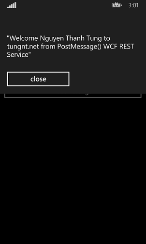 - string result = await WCFRESTServiceCall("POST", "PostMessage", "\"Nguyen Thanh Tung\"");