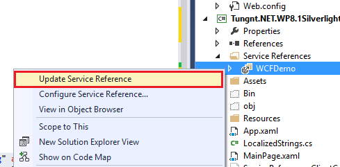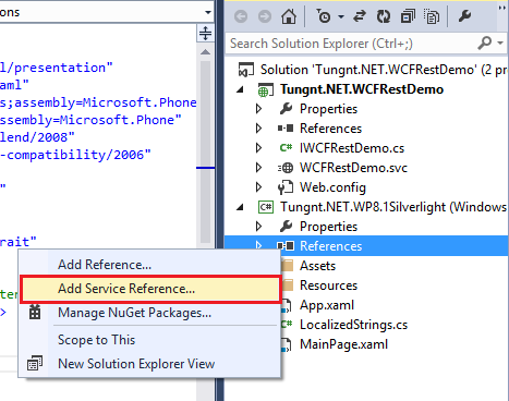 In Windows Phone 7, Windows Phone 8 and Windows 8.1 the way to use a WCF Service is relatively easy, you only need to add a Service Reference then call the generated functions defined in the WCF Service in the code-behind. But for Windows Phone 8.1 everything seems a little bit strange because there will be two different ways to build applications for Windows Phone that uses the Silverlight core or Windows Runtime core. Now we'll get a detailed look at how to use a WCF Service in Windows Phone 8.1. The example source code is reused from the previous article that is a WCF service has the two functions GetMessage and PostMessage.