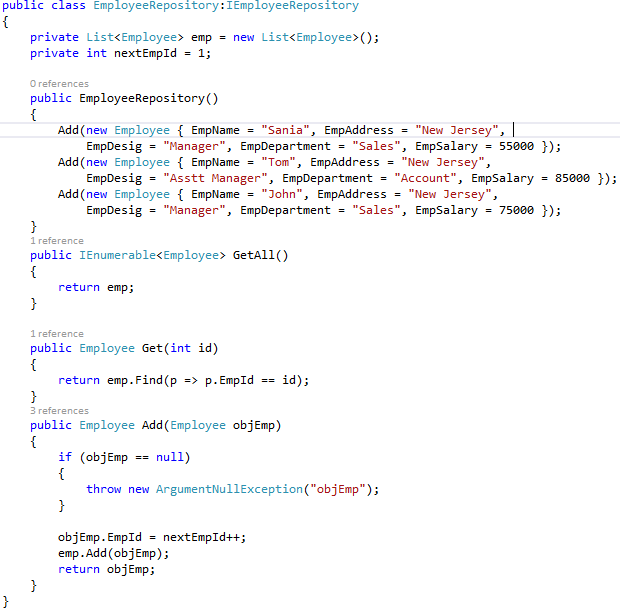 Step 7: Add the class EmployeeRepository to implement the methods defined in the interface.