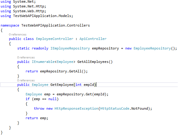 In this article, I will explain the creation of Web API using repository using Visual Studio 2013.