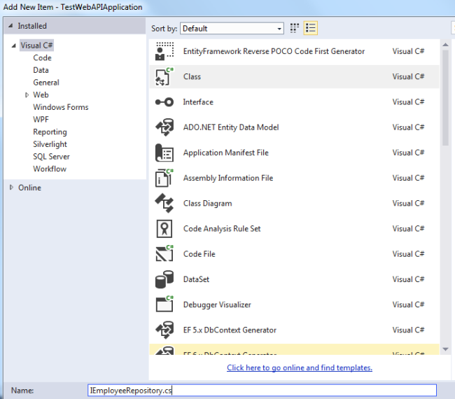 Step 6: Add an Interface as repository class IEmployeeRepository.