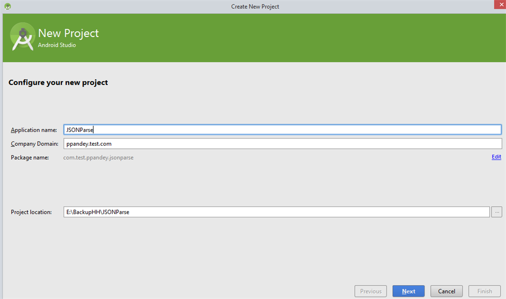Parsing JSON data is important in Android. Create a new project in Android by using the following steps:
