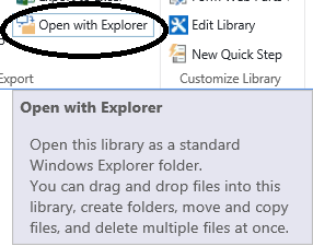 - For document library from “LIBRARY” section use “Open with Explorer” option and copy all the documents.