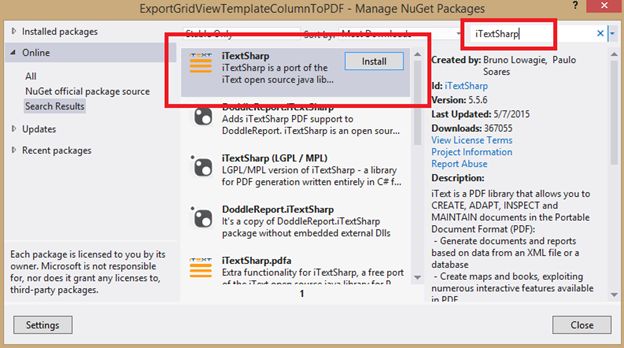 Here, to export the Grid View Data to a PDF we need to add a reference of iTextSharp as in the following: