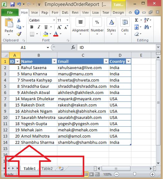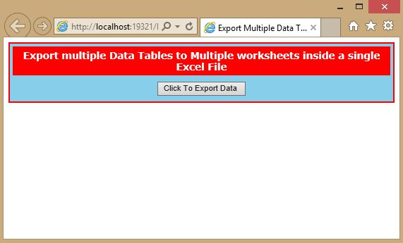 - <td colspan="2" style="background-color: #f00; color: white; font-weight: bold; font-size: 12pt; text-align: center; font-family: Verdana;">Export multiple Data Tables to Multiple worksheets inside a single Excel File</td>