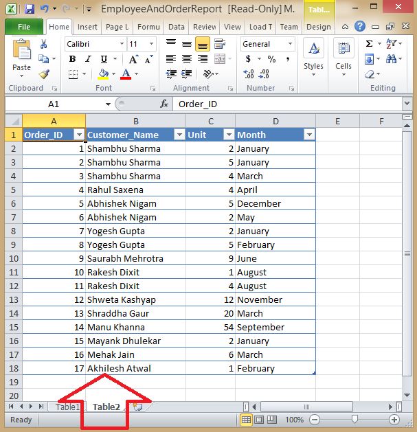 Now you can see both tables in separate worksheets in a single Excel sheet.