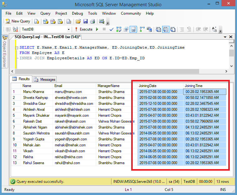 In the preceding result the Date and Time format is the same as we have in our database. So now we will convert like this: