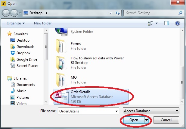 Browse to the Microsoft Access database file in the system and click Open.