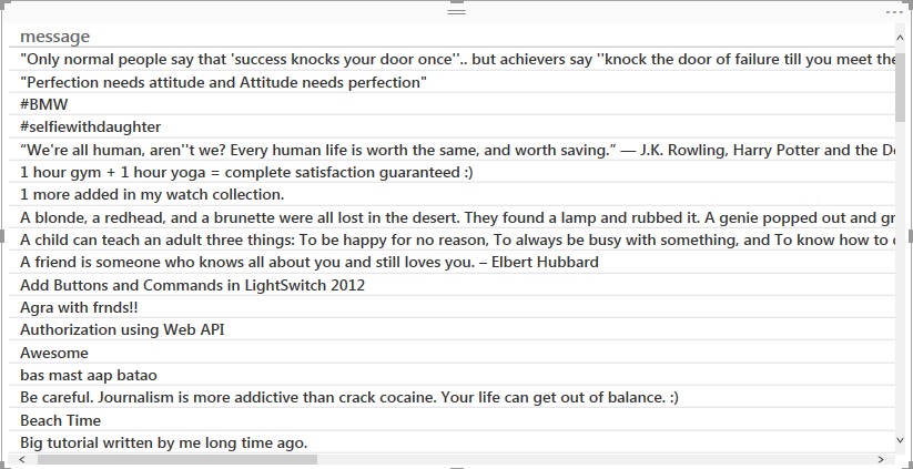 Now finally in result you can see all feed message in a table.