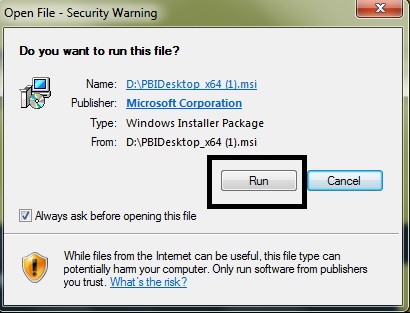 Now double-click on the downloaded .msi file and select the Run button as shown in Figure 2.