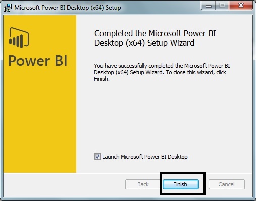 Once finished, you are all done installing Microsoft Power BI Desktop. Be sure to select the Launch Microsoft Power BI Desktop check box to launch the product immediately in Figure 7.
