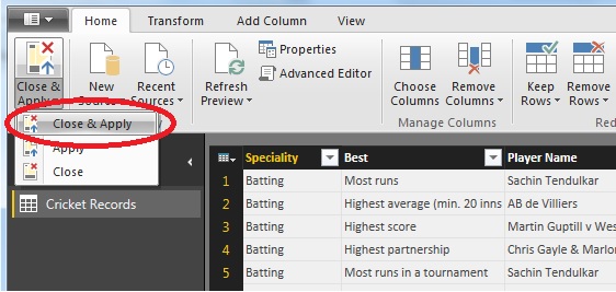 Now let’s load the query to the report, you have to select Close & Apply from Home ribbon.