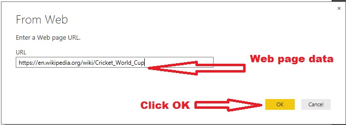 Once you connect with data source, You need to provide web page URL and click on OK button.