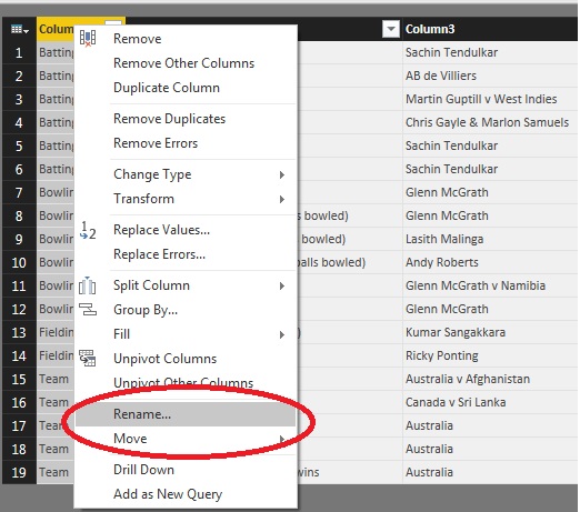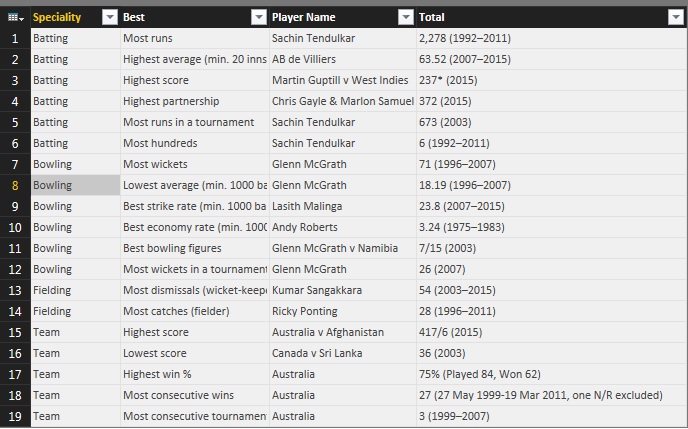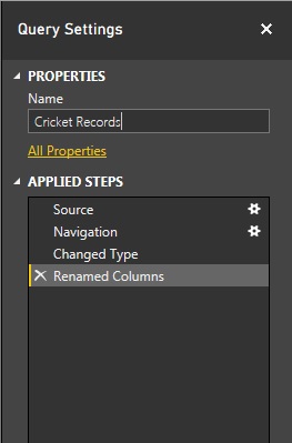 In the Query Settings pane, in the Name text box, enter Cricket Records.