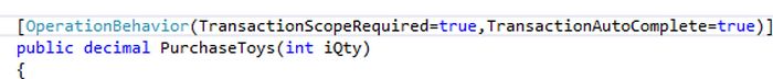 We will now discuss two important attributes we need to define in the transaction, they are TransactionScopeRequired and the TransactionAutoComplete properties in operation behavior.