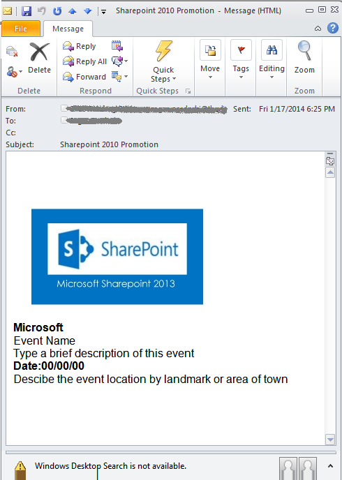 Use the following procedure to add images in a SPD email body in 2010