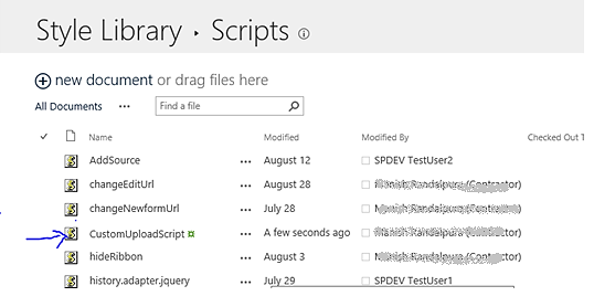 Step 7: Upload the CustomUploadScript.js file to script folder in style library.