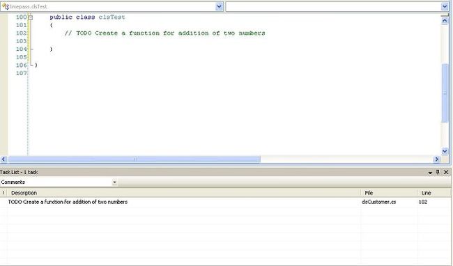 IntroductionThis is my first .NET article in C# Corner. This is all about the Task List window that is helpful in managing comments. Most of us are not aware of this feature. That's why I decided to write an article on this feature of the Visual Studio framework.Task ListTask List is nothing but an integrated to-do list within the Visual Studio framework. We can use the Task List feature of the Visual Studio framework to create 3 types of tasks.