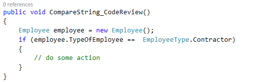 Instead, one can leverage an Enum to make a strongly typed check for the employee type. There is a variety of benefits to this approach.