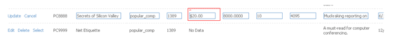 DataFormatString property is used to change the format of displaying data. I made price should be displayed in currency format [having $ in front of the value]. Than for records which are not having price value, I am making it to display with "No Data". At the end, we are seeing the currency format should be used even while editing the price field by making ApplyFormatInEditMode = true.