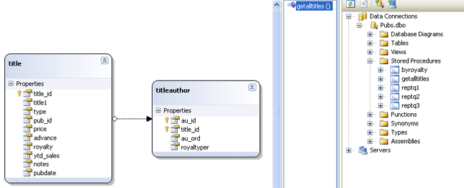 Open the solution used in previous article, go to pubs.dbml and drag-drop the SP getalltitles from Server Explorer as shown below: