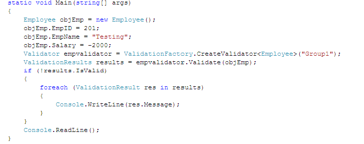 In previous article, we had discussed about implementation of validators using Enterprise Library's Configuration Tool. In this article, we will look into validator's implementation using custom Code and end up with Message templates. Sometimes, the built-in validators might not serve our purpose. In those cases, we can create our own validating methods.