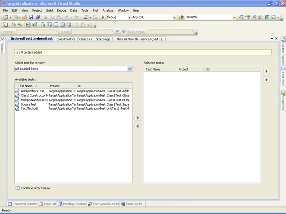 In this article, I am going to explain some more features of Testing Framework of VS 2008. I am going to extend the same sample code used in previous article. Here, I am going to discuss about ordering execution of test cases and configuring it.