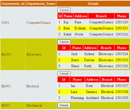 named as DepartmentId, DepartmentName and details. All data of DepartmentId and
