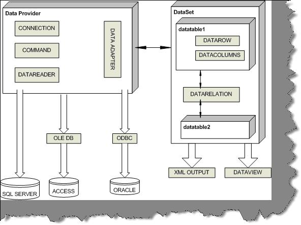 ORACLE etc) rather it talks with Data adapter, who is responsible for filling the dataset. Dataset can have one or more Data table and relations.