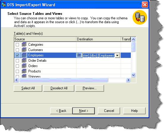 For setting up the sample SQL table, we can use the DTS import wizard to import the table. See the below figure which is using data source as Microsoft Access. While importing the database author had, give the database name as "Employees".