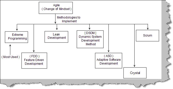 Agile is a thinking approach to software development which promises to remove the issues we had with traditional waterfall methodology. In order to implement Agile practically in projects we have various methodologies. Below figure 'Agile Methodologies' shows the same in more detailed manner.