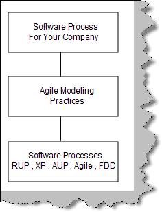 In abstraction we can say it augments other software processes. For instance let's say your company is using UML and then Agile applies approach practices on UML.For example "Keep things simple" is Agile approach. So it means that we do not need to use all diagrams in our project, use only which are needed. If we summarize then in one word we can say Agile modeling says "Do only what's needed and nothing more than that".
