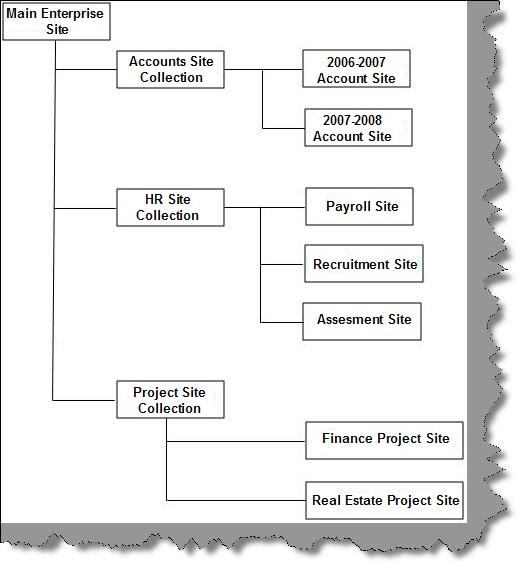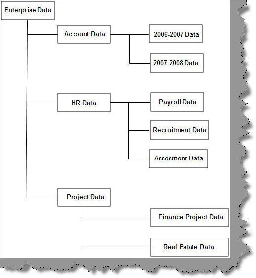 Share point is all about enterprise data. When we talk about enterprise data it looks some as shown in the figure below. In other words grouping and sub groupings of data.