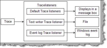 'Tracelistener' are objects that get tracing information from the trace class and they output the data to some medium. For instance you can see from the figure 'TraceListener' how it listens to the trace object and outputs the same to UI, File or a windows event log. There are three different types of 'tracelistener' first is the 'defaulttracelistener' (this outputs the data to UI), second is 'textwritertracelistener' (this outputs to a file) and the final one is 'Eventlogtracelistener' which outputs the same to a windows event log.