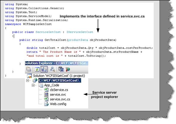 We also need to provide implementation for the interface. So we have made a class ServiceGetCost which has the actual implementation. Below figure shows the same in detail. In the below figure you can also see the solution files.