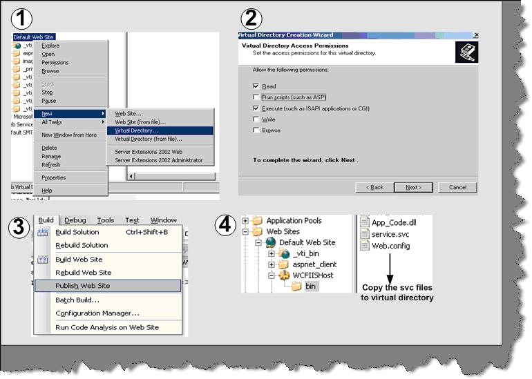In the third step, we will publish the website to our virtual directory. Note the fourth step in which we have copied the svc file so that the service can be requested.