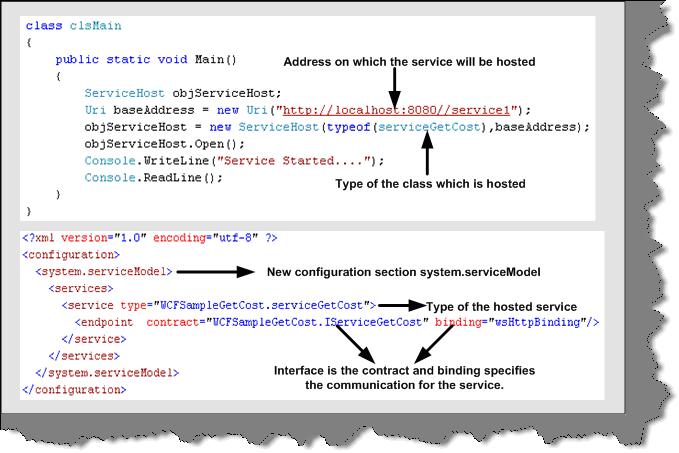 Once our service class is done its time to host this service. There are various ways of hosting a WCF service we will look in to the same in the next question. For the current example, we will host in their own process.