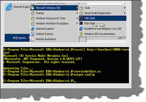 In the above command <Service Hosted URI> is the URI on which the service is hosted. One you run the command against the URI it will generate two files one is the config file and the other is the proxy. You can see in the above figure two files are generated serviceGetCost.cs and output.config file. With the help of these two files, we will make our client.