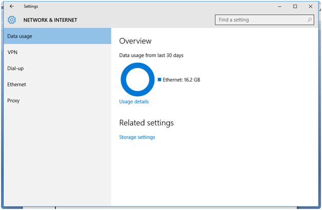 Data usage" option. You can see the data used in the last 30 days. I am using the Ethernet port to access the internet and the data usage is approx 16.2 GB.