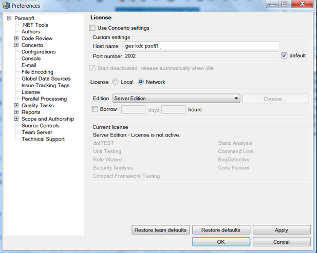 - Open VS2012. In the toolbar, Parasoft -> Preferences. Activate the license as shown in the image below: