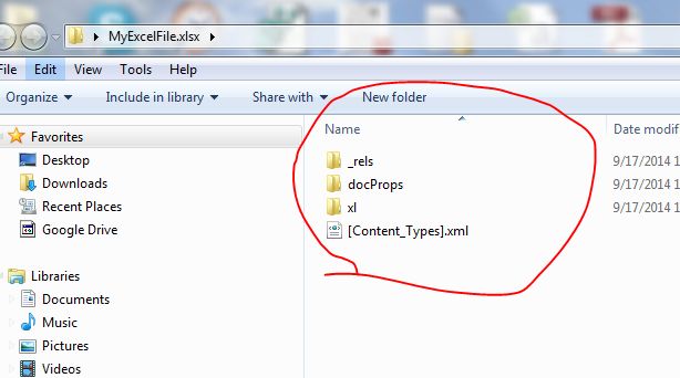 If you have an .xlsx file, first Zip it and then if you unzip it to the following folder structure: