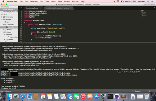 Open the project Hello Mvc in the Sublime to check if your color scheme, Language and Intellisense settings are done correctly.
