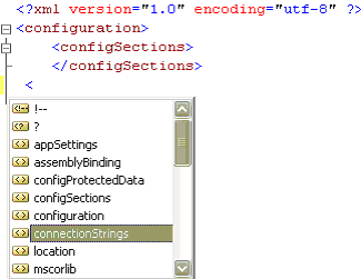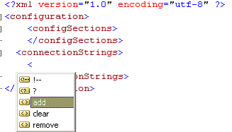 - Open it and add directly whatever your want in terms of connection strings, the "intellisense" will help you to do that.