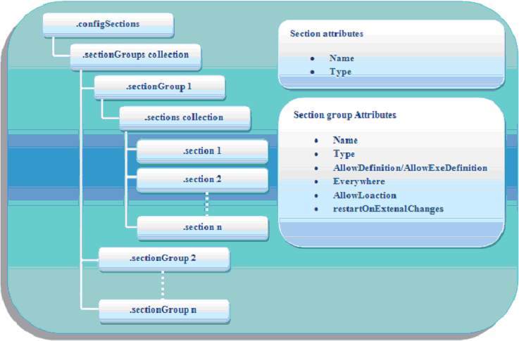 This figure gives a clear idea of the data structure wrapped in the "<configSections></configSections>":
