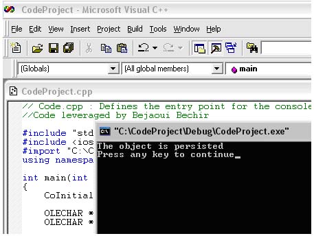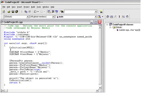 Use case: Given that serialization process is not possible under Visual C++ 6.0, you will create a COM object that could be consumed locally by a Visual C++ 6.0 client application by exposing an initial .Net assembly to COM+. To follow this walkthrough, Visual Studio 2008 and Visual C++ 6.0 have to be installed within your machine.
