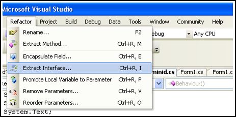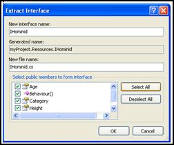 The problem is solved by Visual studio as it extracts the right interface automatically for you via refactoring the code. You just follow the procedure as follow. First, browse to the Hominid class then select the Extract Interface menu item.