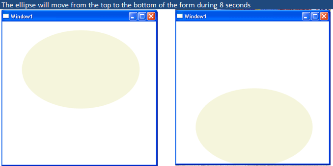 To perform this task using C#, open a new WPF application and then add this code to the C# code editor, for instance, don't forget to include the both namespaces System.Windows.Media.Animation and System.Windows.Shapes if they aren't included yet.