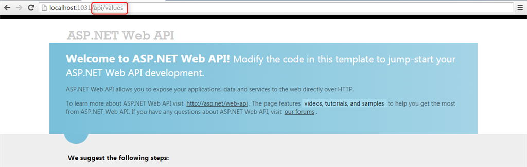 localhost:1031/api/values/1 in this url we specify the customer id then it will show the record of given specific id.
