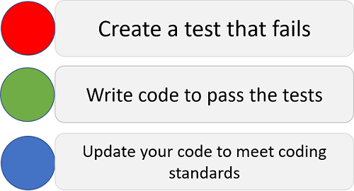 The motto of Test-Driven Development is Red, Green, Refactor.